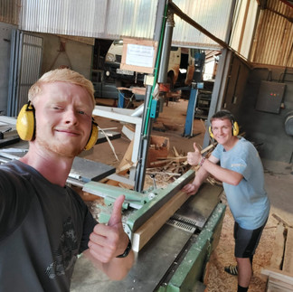 Zur ungefähr selben Zeit habe ich mich auf den Weg zu einer anderen DIGUNA Station gemacht, wo ich mich auch jetzt gerade aufhalte. Ich habe das Angebot bekommen mit einem Schreiner vor Ort 12 Betten für Crossroads und DIGUNA zu bauen. Denn wir haben in Crossroads nun auch mit dem Bau des Gästehauses angefangen und brauchen daher auch Betten für das neue Haus und das "Family House". Das Angebot habe ich natürlich sofort angenommen, weil es eine riesige Möglichkeit ist mehr von dieser Arbeit zu lernen und vor allem auch die Nutzung von größeren Maschinen als nur einer Handkreissäge zu lernen. Die Arbeit finde ich spannend und es ist schön am Ende ein schönes Ergebnis sehen zu können. Auch die Leute hier auf der Station sind sehr nett und haben mich sehr freundlich empfangen.
